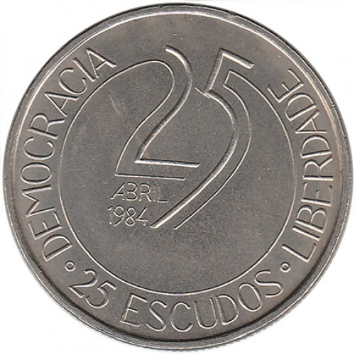 Moeda de 25$00 alusiva ao 10º Aniv. do 25 de Abril