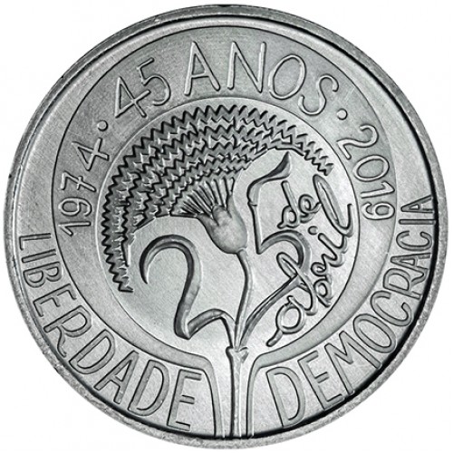 Moeda comemorativa em Proof alusiva aos 45 anos do 25 de abril