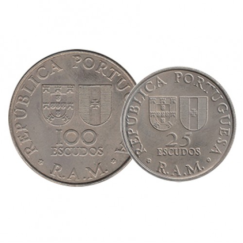 Diâmetro da Moeda: 100$00 - 34.00mm.; 25$00 - 28.50mm;